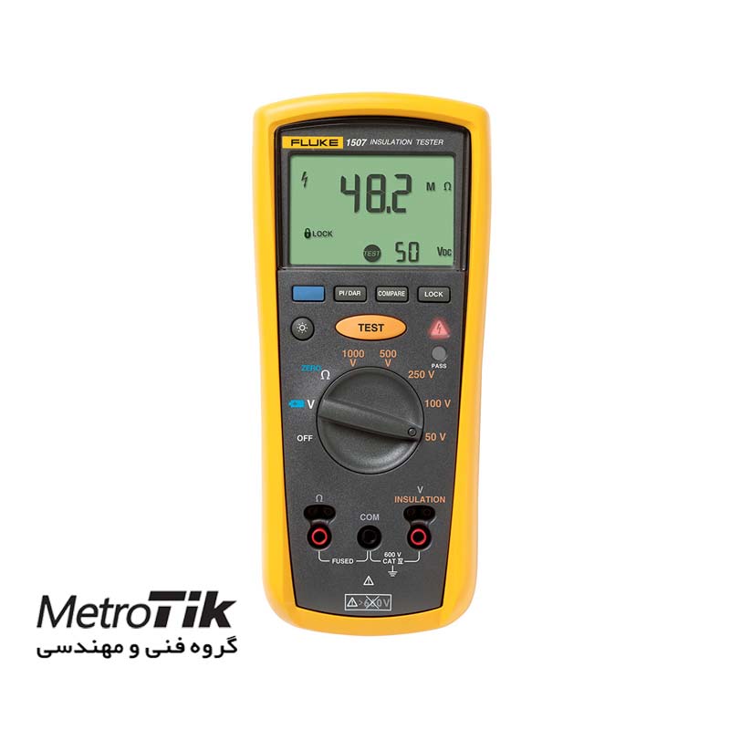 (FLUKE 1507) با قابلیت تست در ولتاژهای ۵۰، ۱۰۰، ۲۵۰، ۵۰۰ و ۱۰۰۰ ولت، انتخابی ایدهآل برای متخصصان برق صنعتی محسوب میشود.
